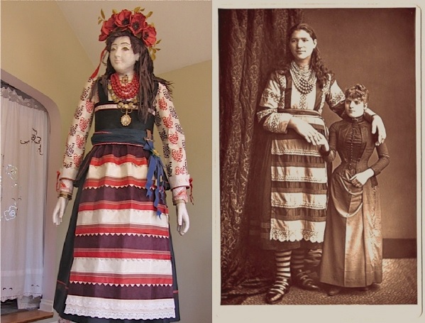 (L-R) The Elizabeth Lyska paper sculpture by artist Patty Grazini made for "The Life of the Giantess" exhibit in Seattle; the actual Elizabeth Lyska.