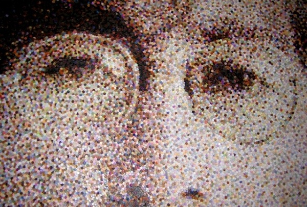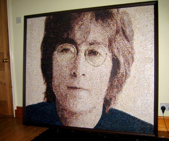 “John Lennon” made with about 99,000 dots on wood by Nikki Douthwaite. 158cm by 122cm, completed March 2011. Photo Courtesy of: Nikki Douthwaite.