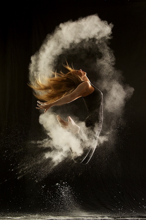 A dancer in motion in artist Geraldine Lamanna’s “Powder Dance” series. Photo Courtesy of: Geraldine Lamanna.
