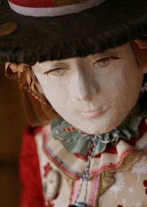 I felt that it was very important to construct the giantess at her actual height. I wanted to introduce her as a real person from history and wanted her to mirror the world in which she lived, giving the spectator today an opportunity to experience a bit of the drama that she would have created. I also constructed a child who acts as her assistant holding a sign advertising her arrival. She stands at four feet, giving the giantess an even larger appearance.