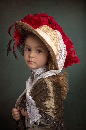 GALO: These spellbinding portraits show your beautiful daughter in two dynamic worlds: one displaying her playful innocence in contemporary settings, and another fraught with nostalgia in recreated period paintings. Please tell us about discovering this dichotomous world of children’s portraiture.