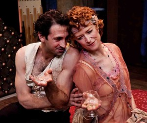 Michael Gabriel Goodfriend as Duncan is saved by his dark good looks, natural energy, and occasional bursts of wry humor. A graduate of the distinguished Yale Drama School, he has appeared in many L.A. and New York off-Broadway theatres, as well as in film, (i.e. Helter–Skelter), and received the Garland Award from Pittsburg Post-Gazette’s “Year’s Best.” He can almost be forgiven a few over-the-top effeminate turns in a Rudolph Valentino costume, as a counter point to Christian Pedersen’s stalwart Mallory. Not surprisingly, with his Procter and Gamble handsomeness, Pedersen’s theatre resume is seasoned with appearances on soap operas such as All My Children and the current nighttime hit, The Good Wife.