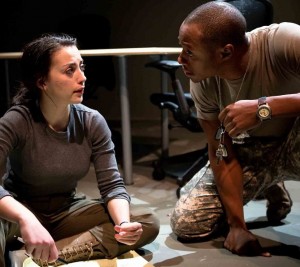 In 2004, Sarah Kennedy is ostensibly hired as an Arabic translator for a military prison a few miles outside of Baghdad. Rudely awakened to her real role as an interrogator, she is ill-prepared for the task, but masking her need for health insurance to cover a sick husband, she has little choice but to stay. But there’s an even greater problem here: Sarah is a good-hearted if unprepared young woman, caught up in circumstances beyond her control. As played by Emily Fleischer (a SUNY acting graduate, along with Winters and several other cast members), we never doubt her sincerity. It is one instance in the casting where her youth and ingenuousness serve the play well.
