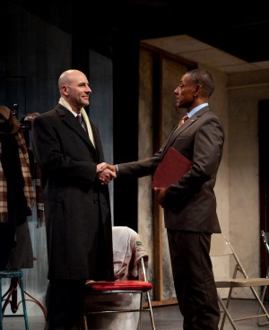 The play interweaves the relationships of Jessie and her husband, Ethan, with Donaldo, Reed, and Tom, the soulless, greedy CEO of the bank (who has a wonderful scene where he hungrily devours a gingerbread house intended for his son during a conversation with Calderon), and, last but not least, Chester Kimmich, the Malcolm X-like minister with no ministry. In perhaps the most pivotal section of the play, Donaldo goes to the ersatz church to confront the minister, who at first asks him to leave but, as Donaldo holds his ground, is coaxed into admitting that life has thrown a “black hole” in front of him and he can’t find his faith. They engage in a long discourse that volleys between the actual situation (the defaulted loan) and the idea of a higher power and losing one’s way, straying far from a moral code, and what’s acceptable in the name of social action. By the end of this, Donaldo doubts his own ambitious motives in life, and is haunted by the memory of his own late father, also a minister. Chester, on the other hand, has been convinced to give his first sermon that Sunday. It’s at this simple gathering that peoples’ true colors show. The weak find the strength to speak their truth, the strong are revealed as morally corrupt or bankrupt, and while Jessie’s immediate problem is solved, larger ones have opened to different degrees for everyone. The most affected is the aspiring politico Calderon who either cannot go back to the steep career ladder he had only just started to ascend or must find a different way to climb it.
