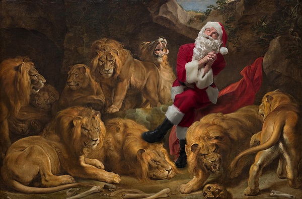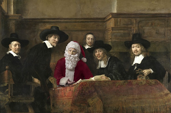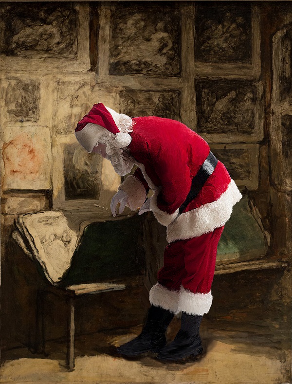 When we last spoke to Ed Wheeler, he was only beginning his humorous and clever Santa Classics series. A year later, the photographer is back as Santa Claus with a dozen new renditions of canonical works of art — ranging from Rembrandt’s The Jewish Bride and Benjamin West’s Benjamin Franklin Drawing Electricity from the Sky to Peter Paul Rubens’ Daniel in the Lions’ Den and Vincent Van Gogh’s Bedroom in Arles, among others — to add to his rapidly growing collection. Both whimsical and evocative, the artworks are given a contemporary life outside of museum doors and collectors’ walls by Wheeler, who after arduous and time-consuming research superimposes himself dressed as the iconic St. Nick into the reproductions as part of a multi-step process.