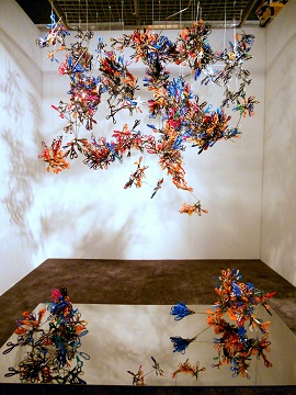 If you want shock value, take a massive amount of sharp pointy objects, amass them together in burr like structures, and hang them from the ceiling with aircraft cable. That’s Shear Madness for you, an installation by artist Steve Maloney.