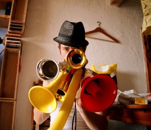 MBI: We thought about doing a striptease, but we discarded the idea; without clothes we are the worst. Everything else [revolves around the idea] that we love improvisation. I will play as a one man band and Santos will paint during the show; Rumboxing in Santos’ pure essence.