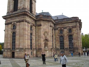 The next day Katrin and her boyfriend, Florian, took me on a tour of Saarbrücken itself. Located about 25 kilometers from Blieskastel next to the Saar river, the city was among the most heavily damaged by Allied bombing raids during World War II, but a few gems of Baroque architecture remain, chief among them the Ludwigskirche (“Ludwig’s Church”) and Saarbrücker Schloss (Saarbrücken Castle).